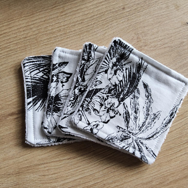 La partie décorative est issue de chutes de tissus et la partie démaquillante est en velours éponge pour garder sa douceur dans le temps.